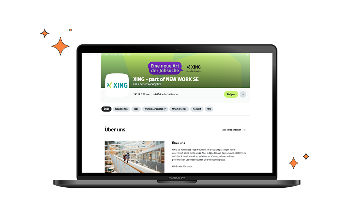 Mit dem XING Unternehmensprofil Pro erhalten Sie einen professionellen Arbeitgeberauftritt, höhere Sichtbarkeit auf XING und effektiveres Recruiting